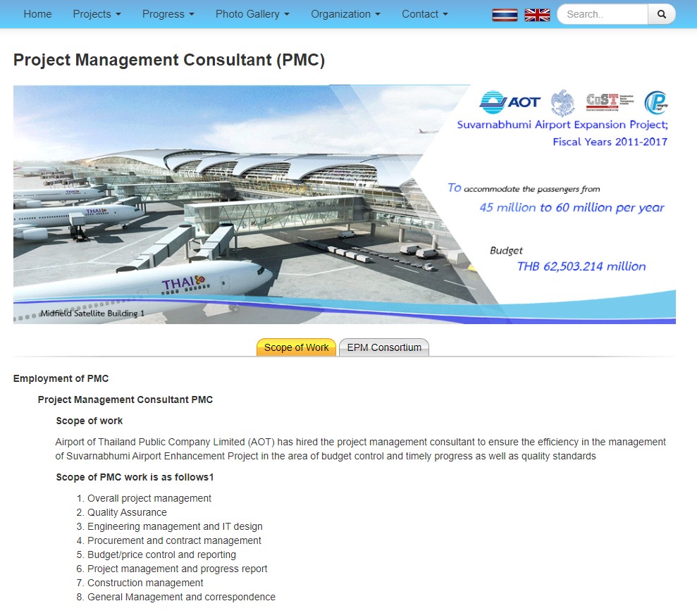Office of Construction Management Suvarnabhumi Airport Website